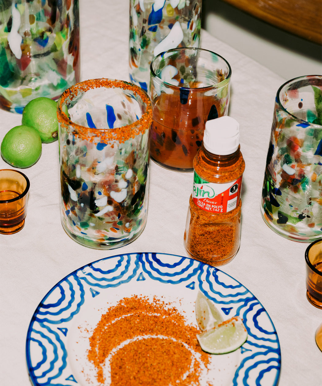 Cocktails are fun and making them is a good ice-breaker for guests. We like picking a ‘house cocktail’ for the night, prepping loads of it and then guests can self-serve or mix their own. Margaritas and negronis are easy to mix in advance and pour over ice (although make sure serving sizes are recommended to prevent guests overdoing it be accident…). You can leave jugs of mixed drinks out next to ice buckets and glasses or even use one of those glass urns with a tap. We like leaving a plate of garnish out too, like tajín for rolling the edge of the glass in and citrus slices.