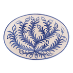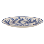 Hand-painted large oval serving platter, in the blue leaves Vina design.