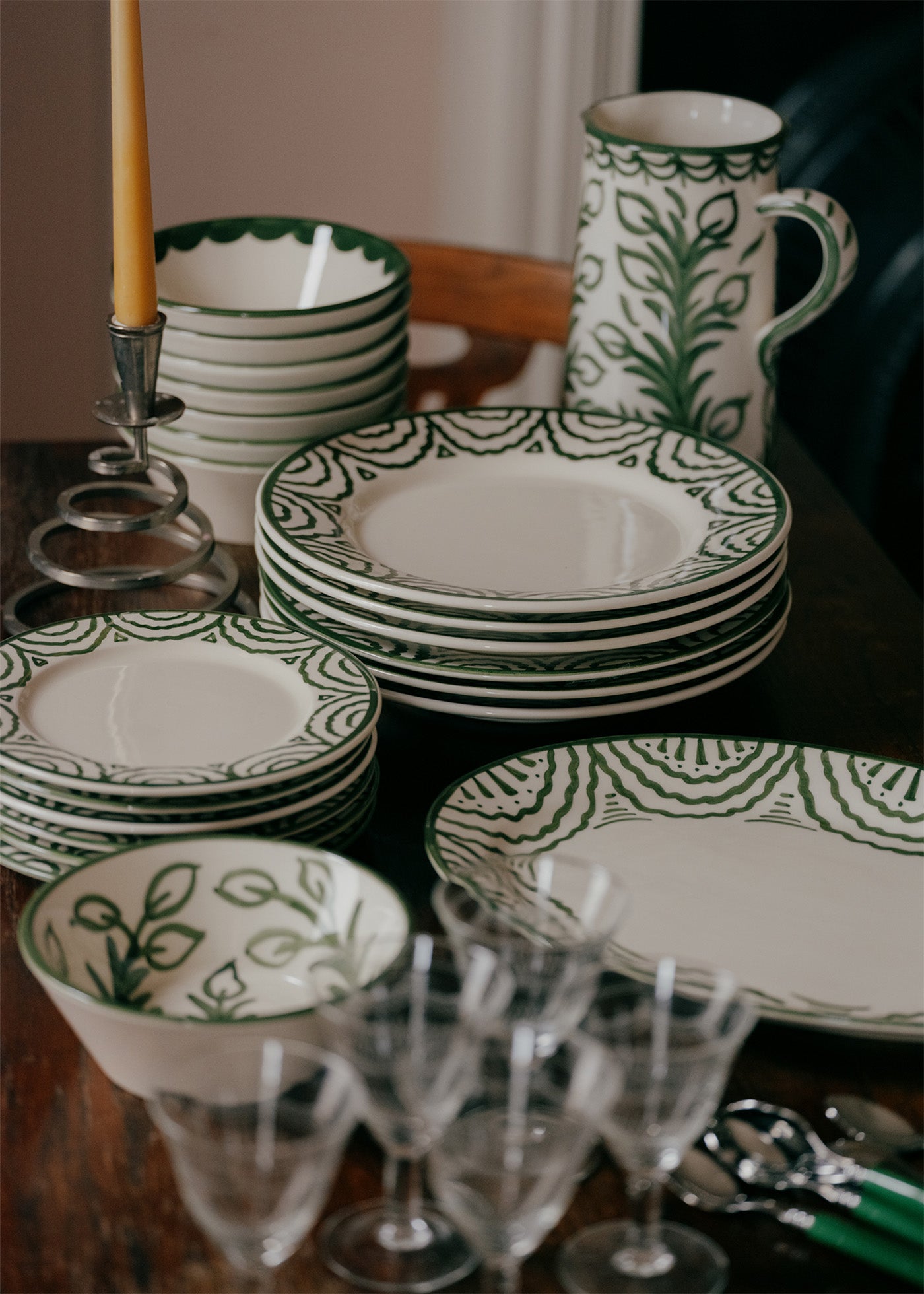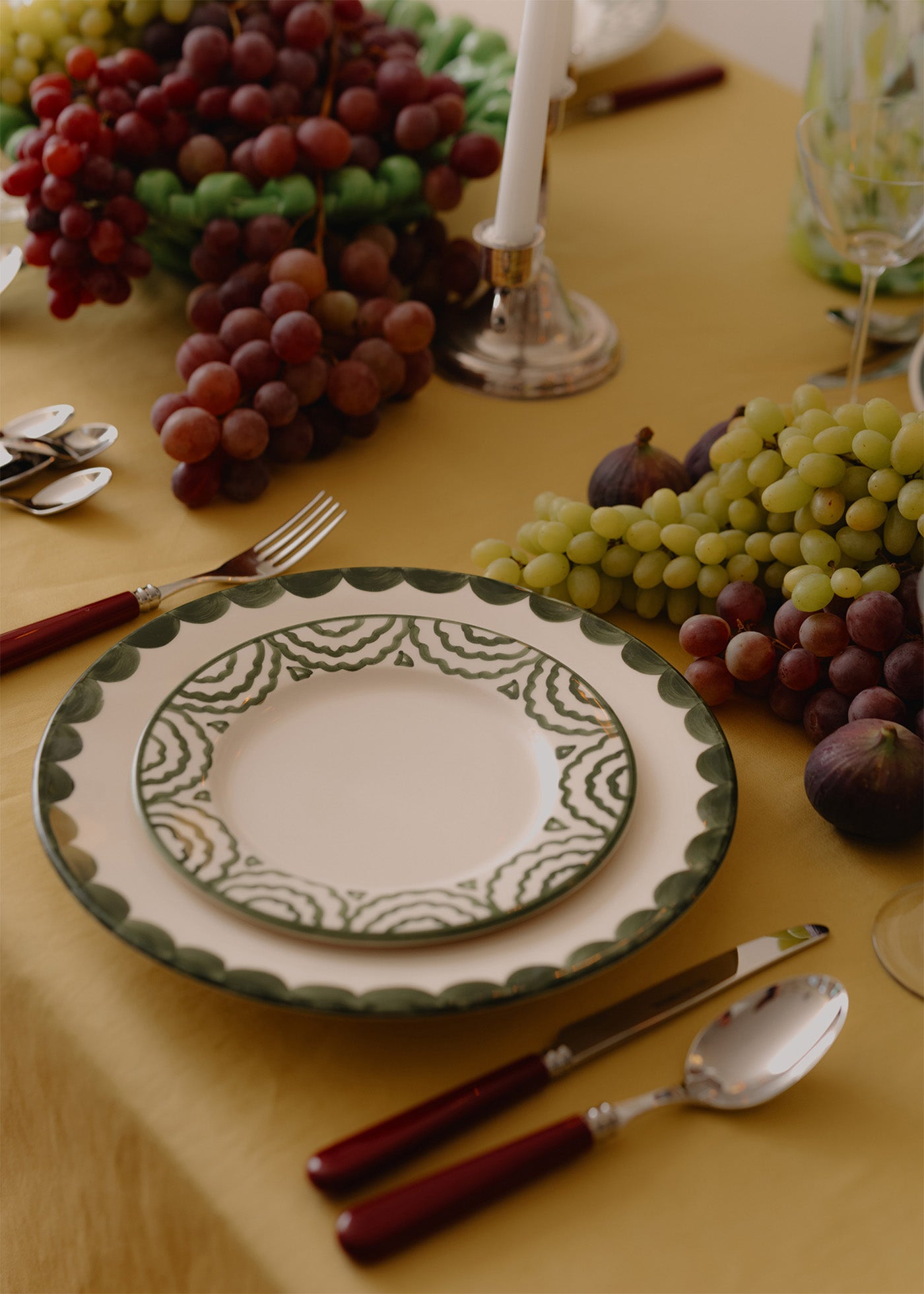 Hand-painted green tabla side plates.