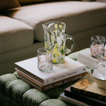 Hand-blown green and white speckled terrazzo jug, mouth-blown by glass artists in the Balearic Islands.
