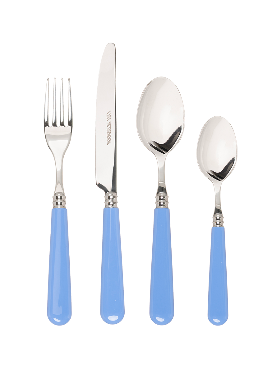 A colourful 16-piece set stainless steel cutlery set with a sky blue handle.