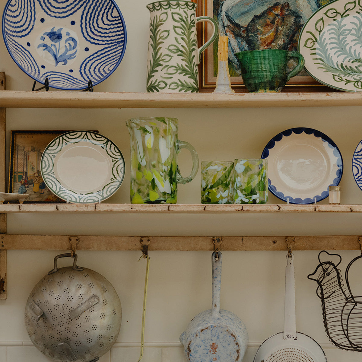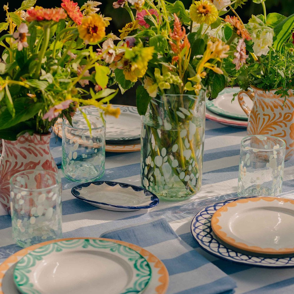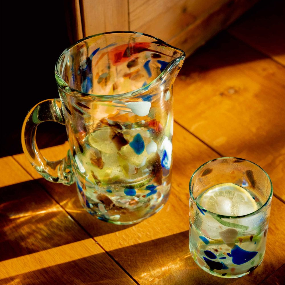 Dreamy drinking glasses and glass jugs made by hand in stunning colours. Classic cocktail tumblers and unique glass jugs, handmade by glassblowers in the Balearic Islands.