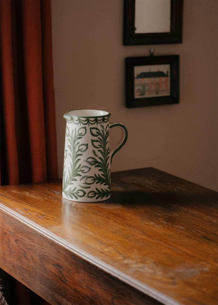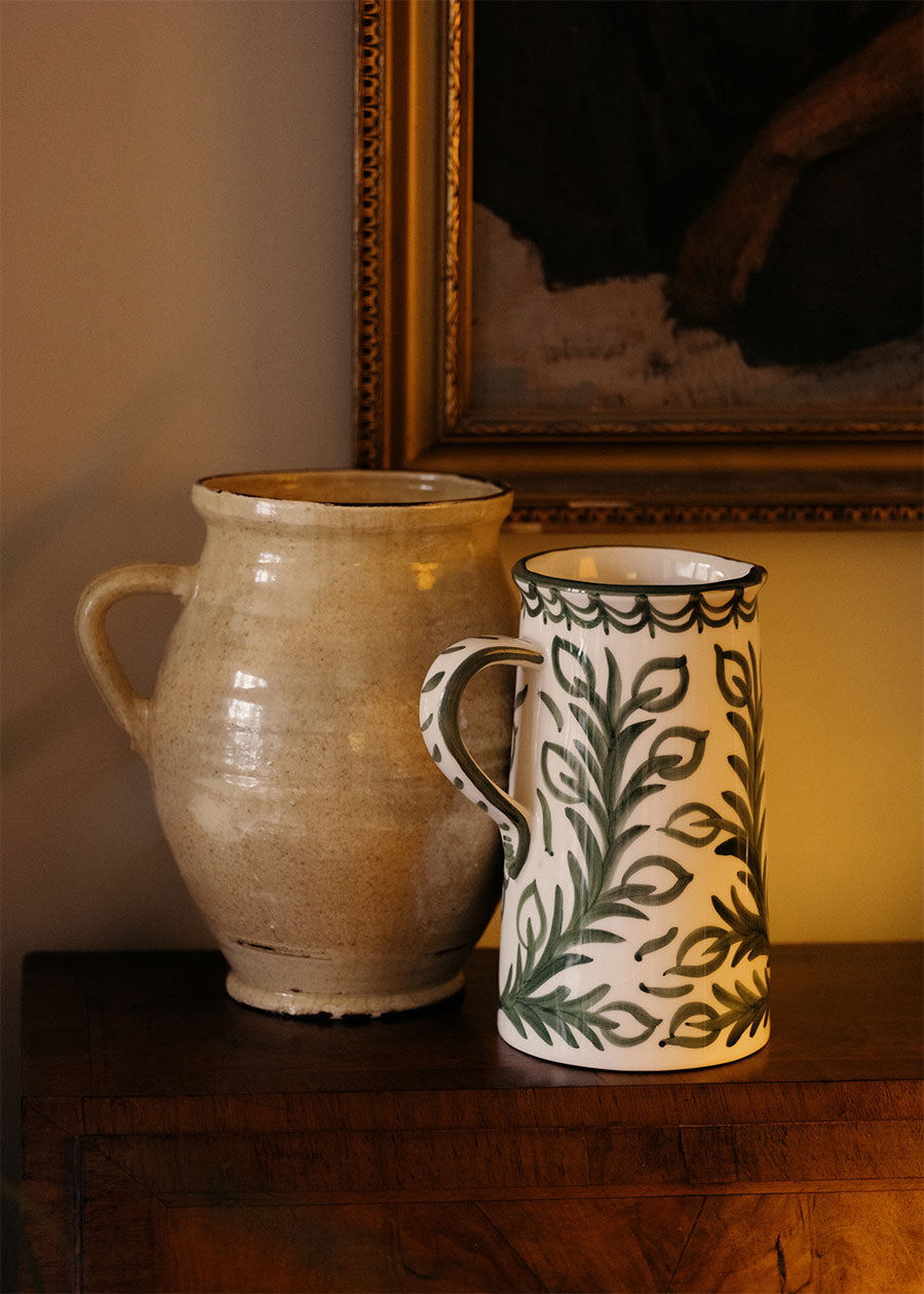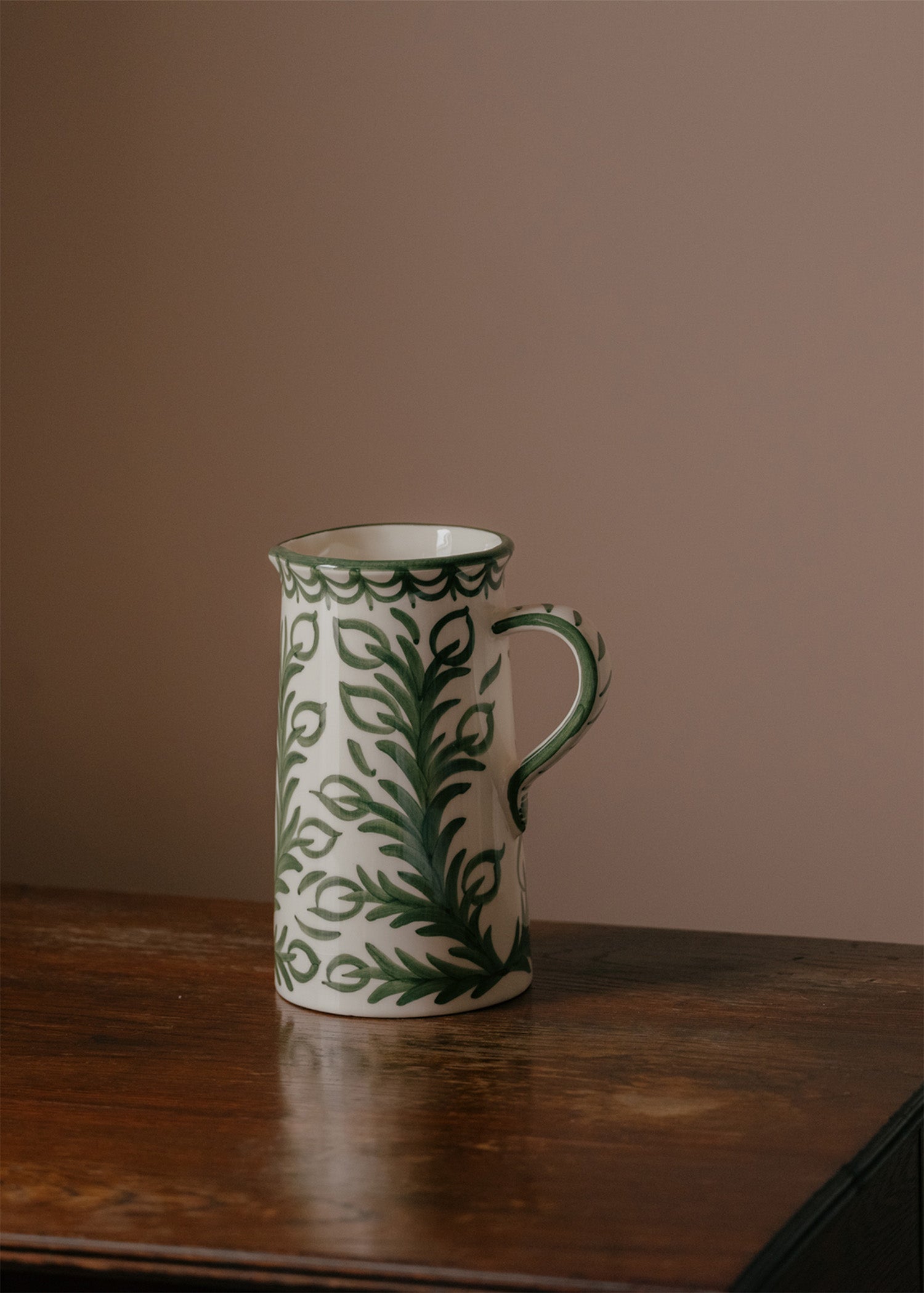Hand-painted large green jug, with a traditional 'repintado' design.