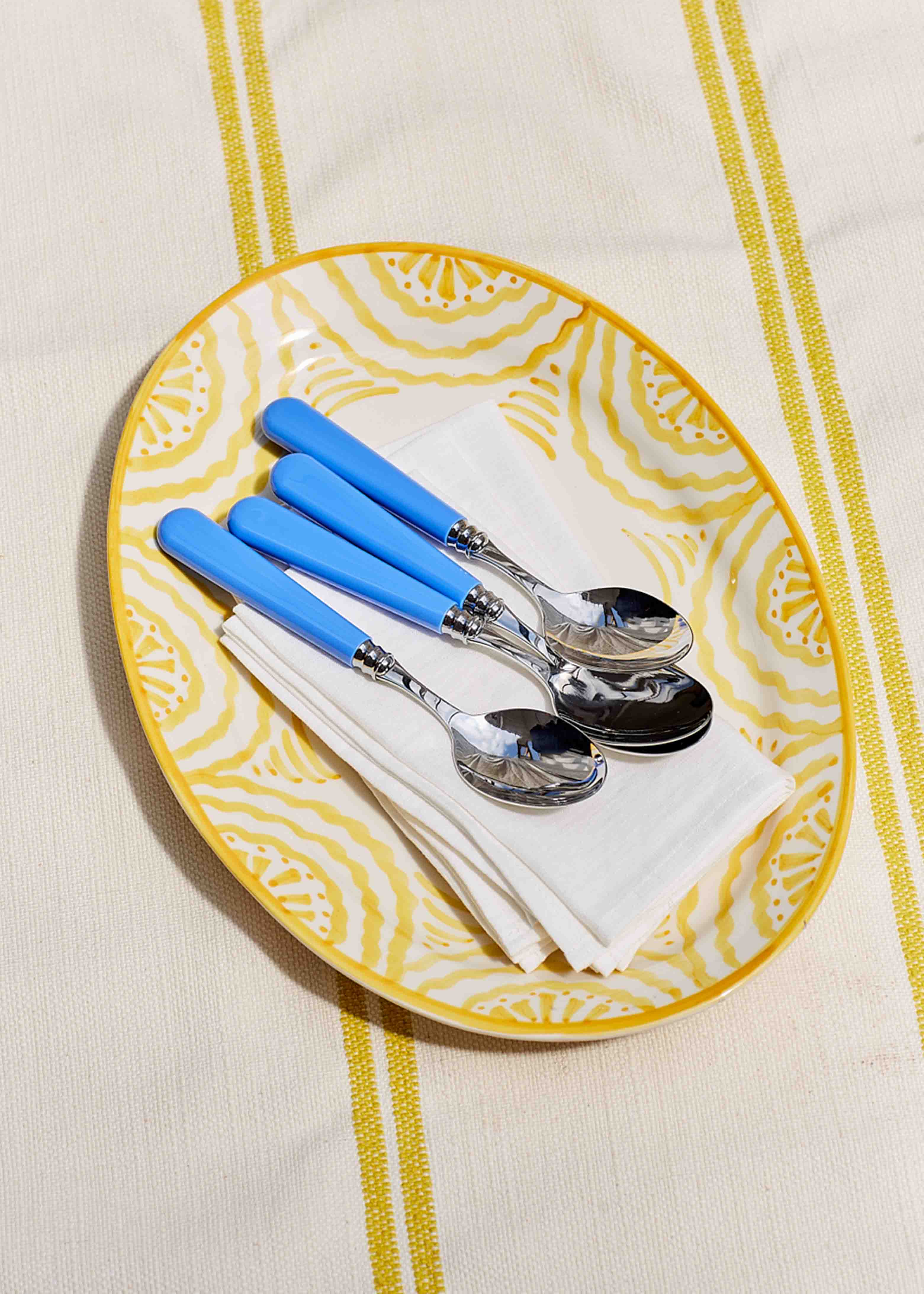 Matching knives, forks and teaspoons available to complete the cutlery set, or mix and match colours to create an eye-catching table.