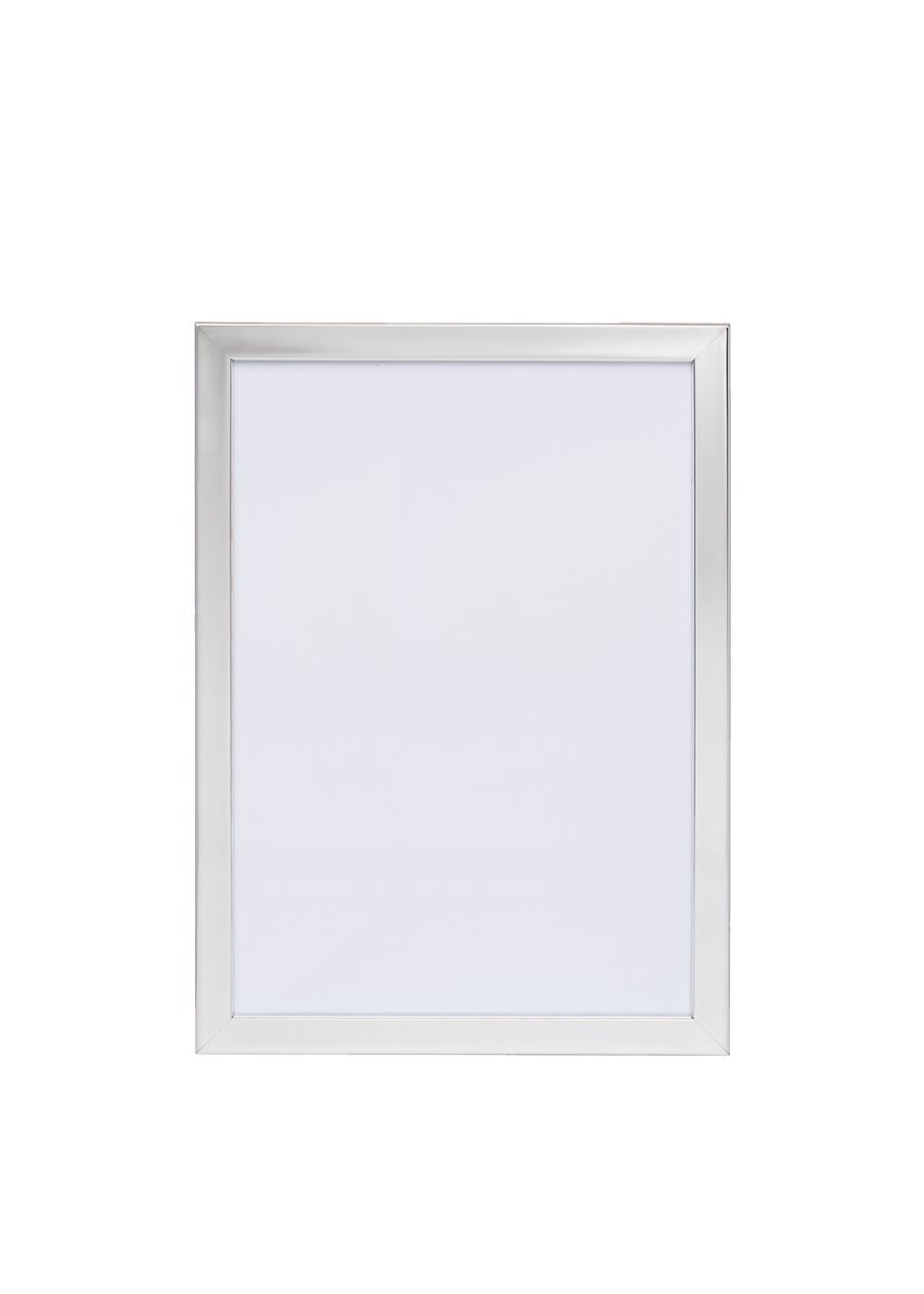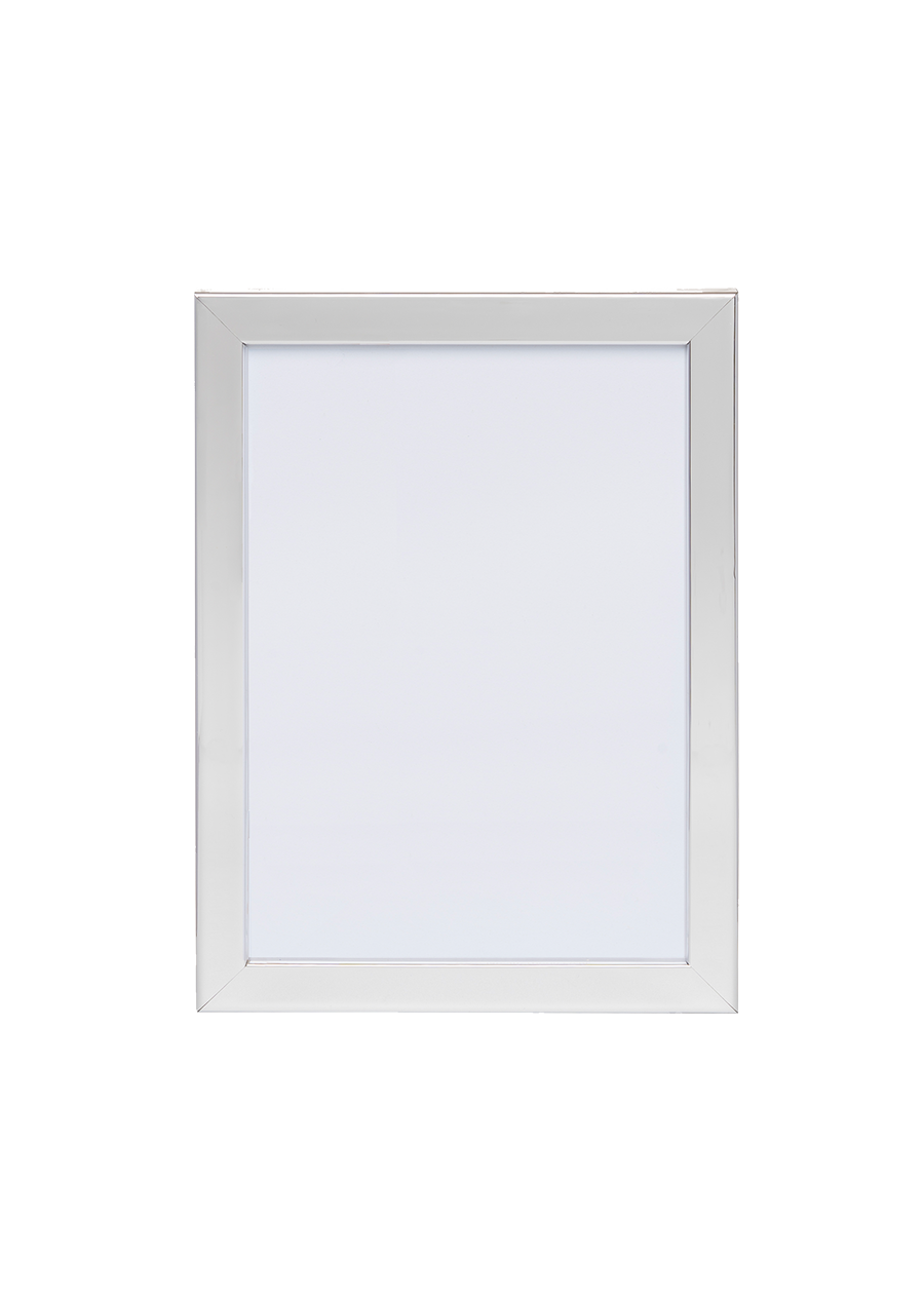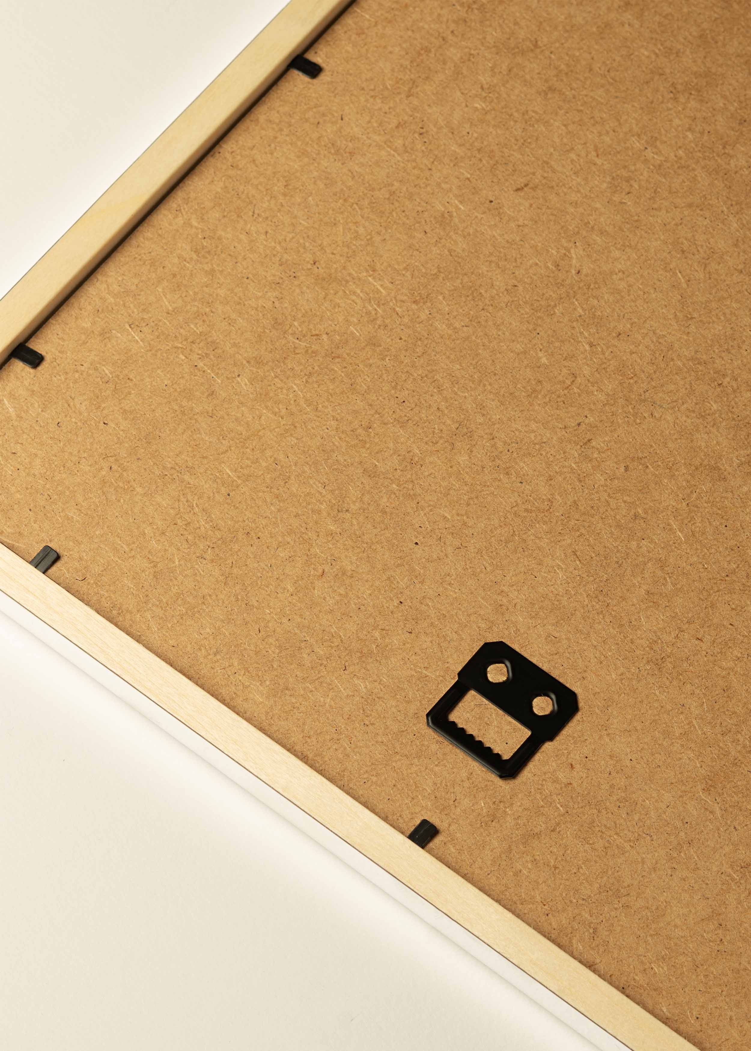 The frame has two metal hangers on the back, so it can be hung both vertically and horizontally on the wall. The frame is opened from the back using the metal clips that rotate to the side, making it easy to frame your artworks.