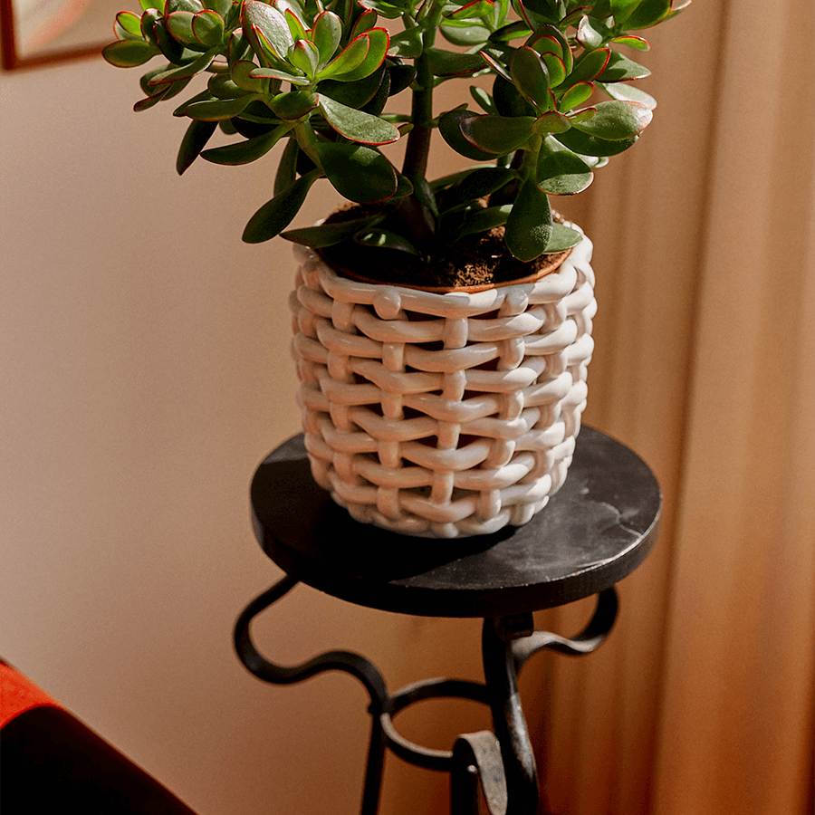 White Basketweave Planter