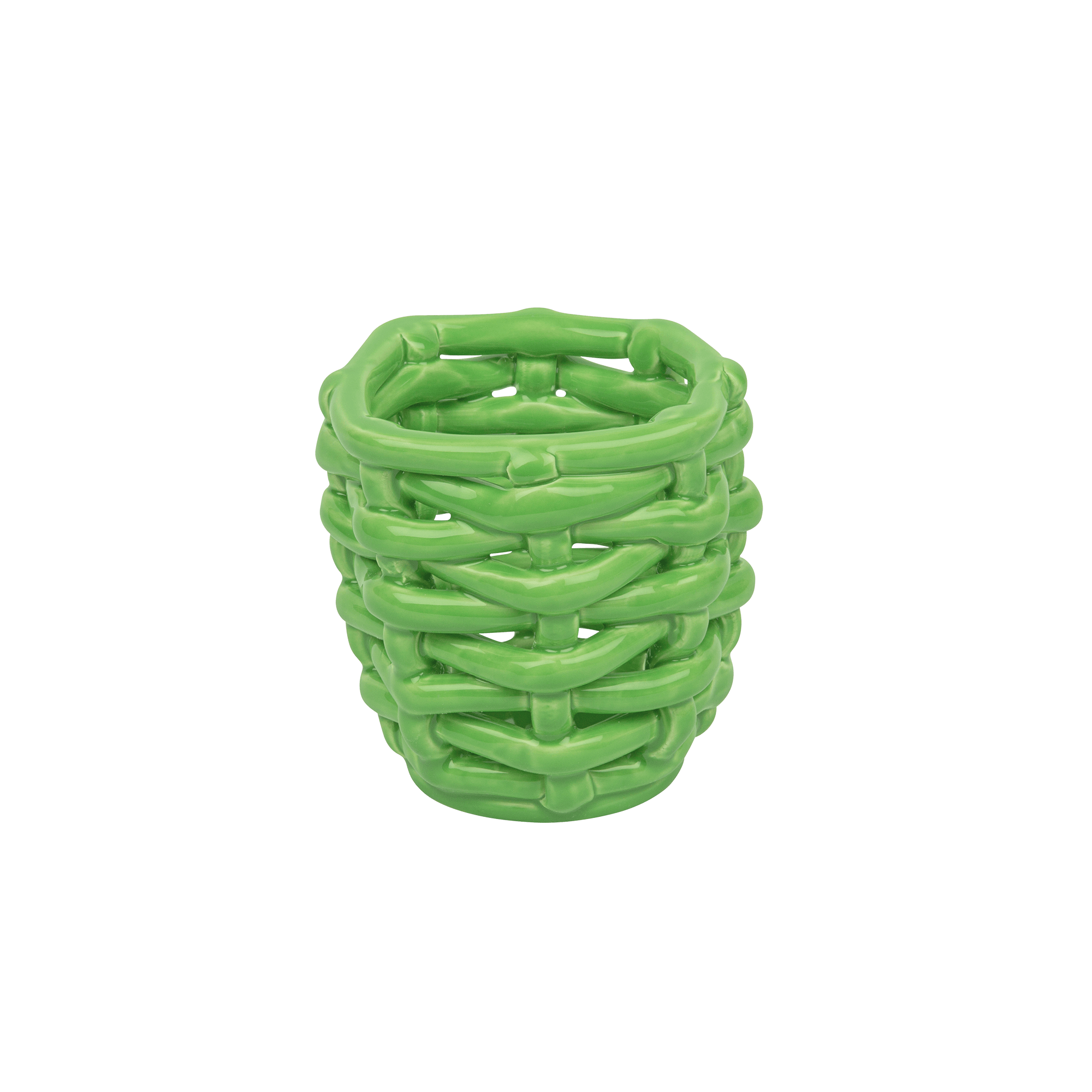 Small Apple Green Basketweave Planter