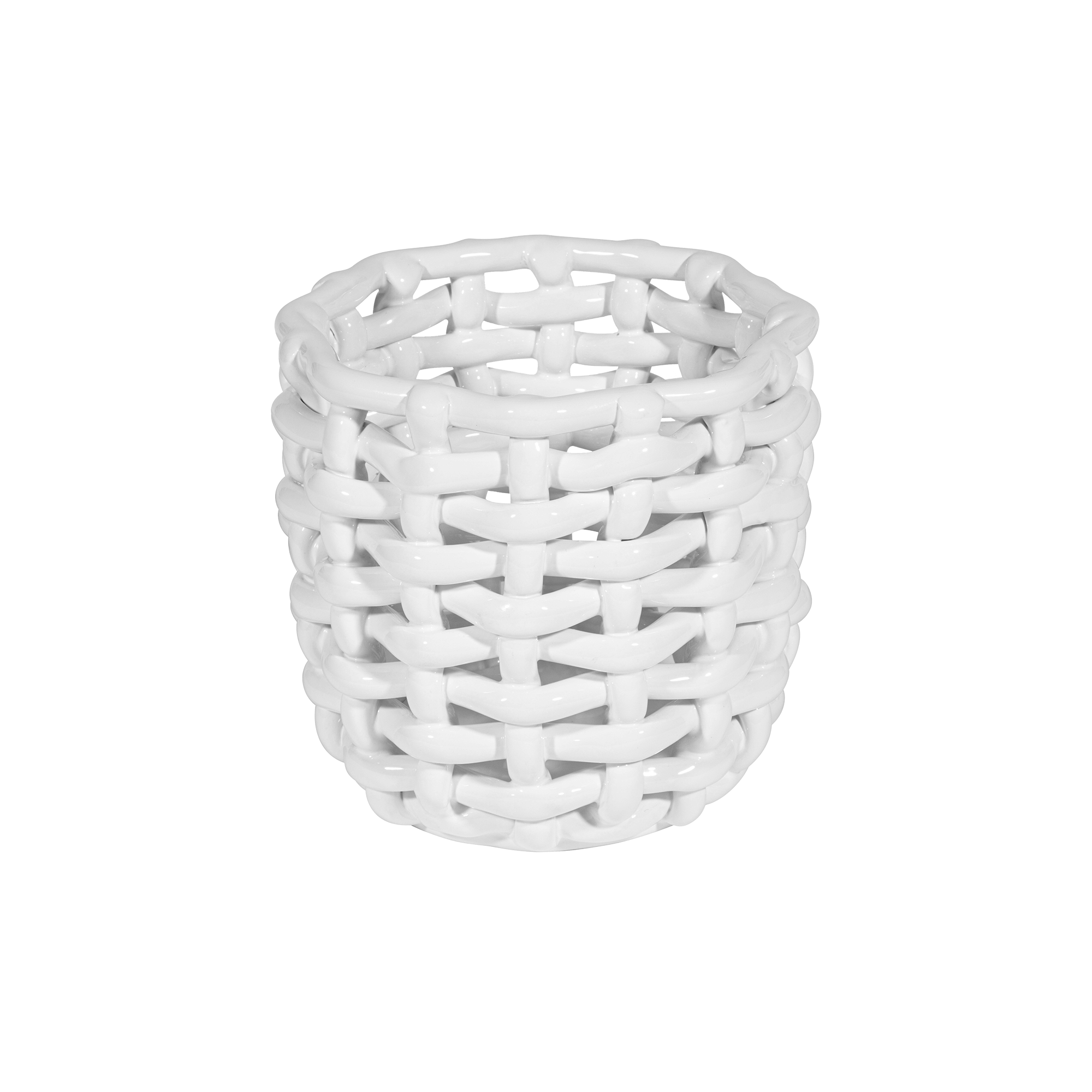 Small White Basketweave Planter
