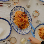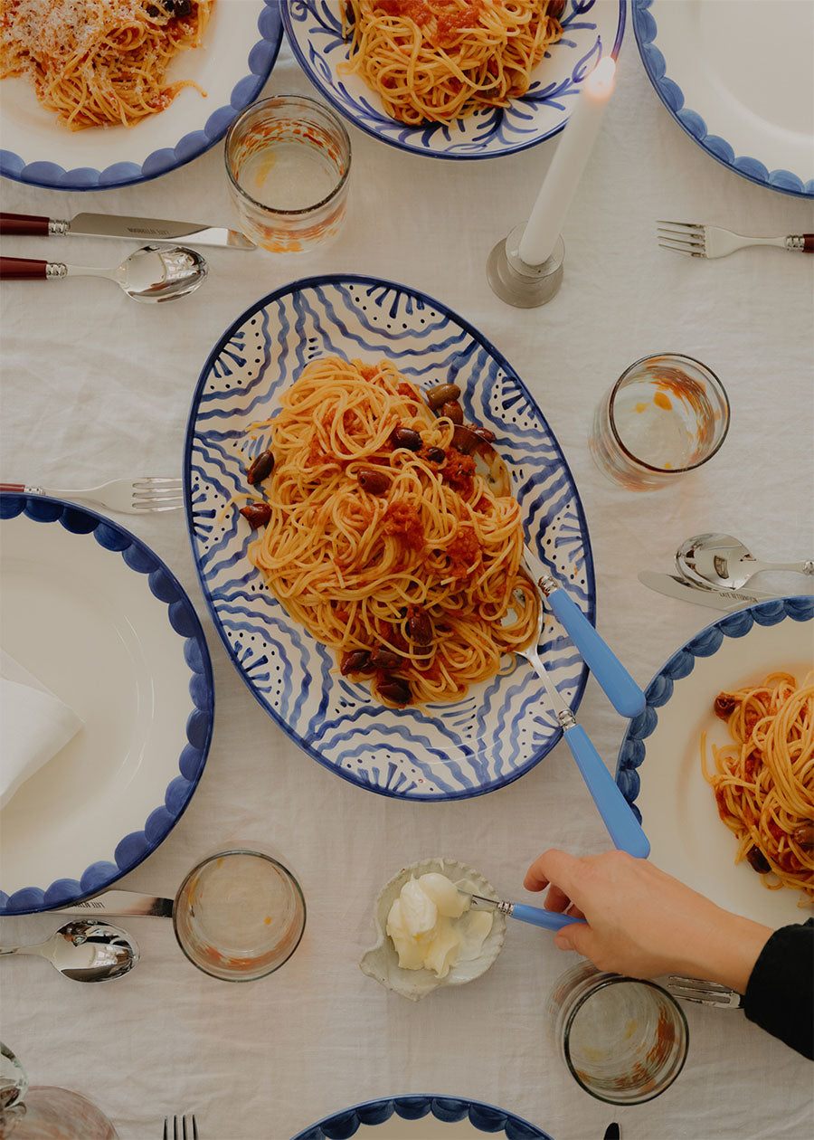 Matching blue knives, forks and dessert spoons available to complete the cutlery set, or mix and match colours to create an eye-catching table.