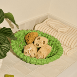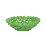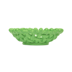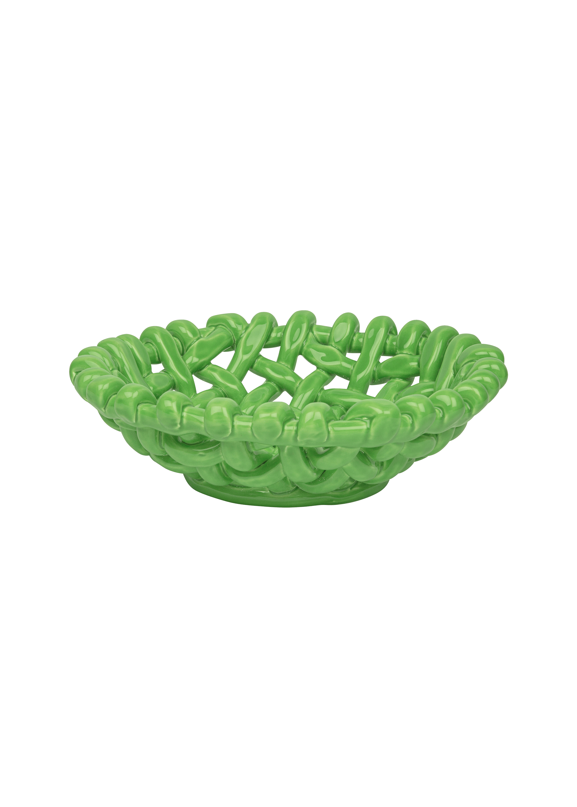 Handwoven apple green ceramic basketweave bowl. Designed to display, these glazed bowls are the ultimate sideboard show-off.