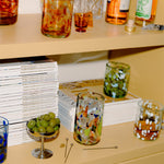 Glass is heated to 1200 degrees so it becomes molten, before being blown, tweaked and twirled into shape. by glass artists.