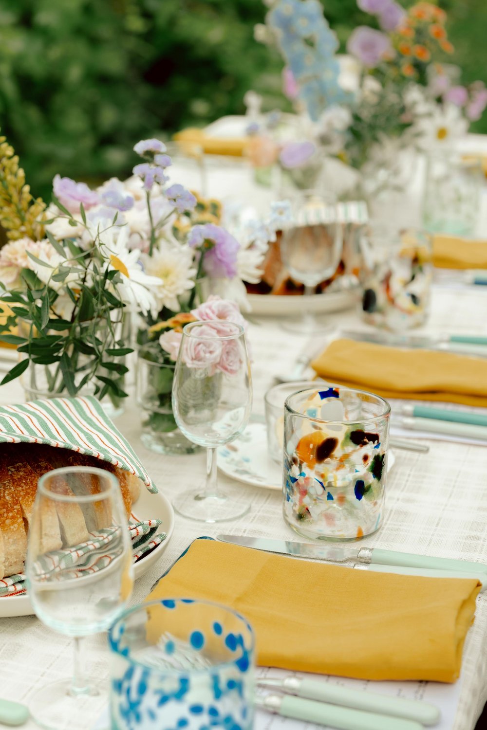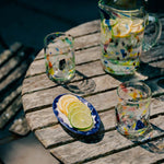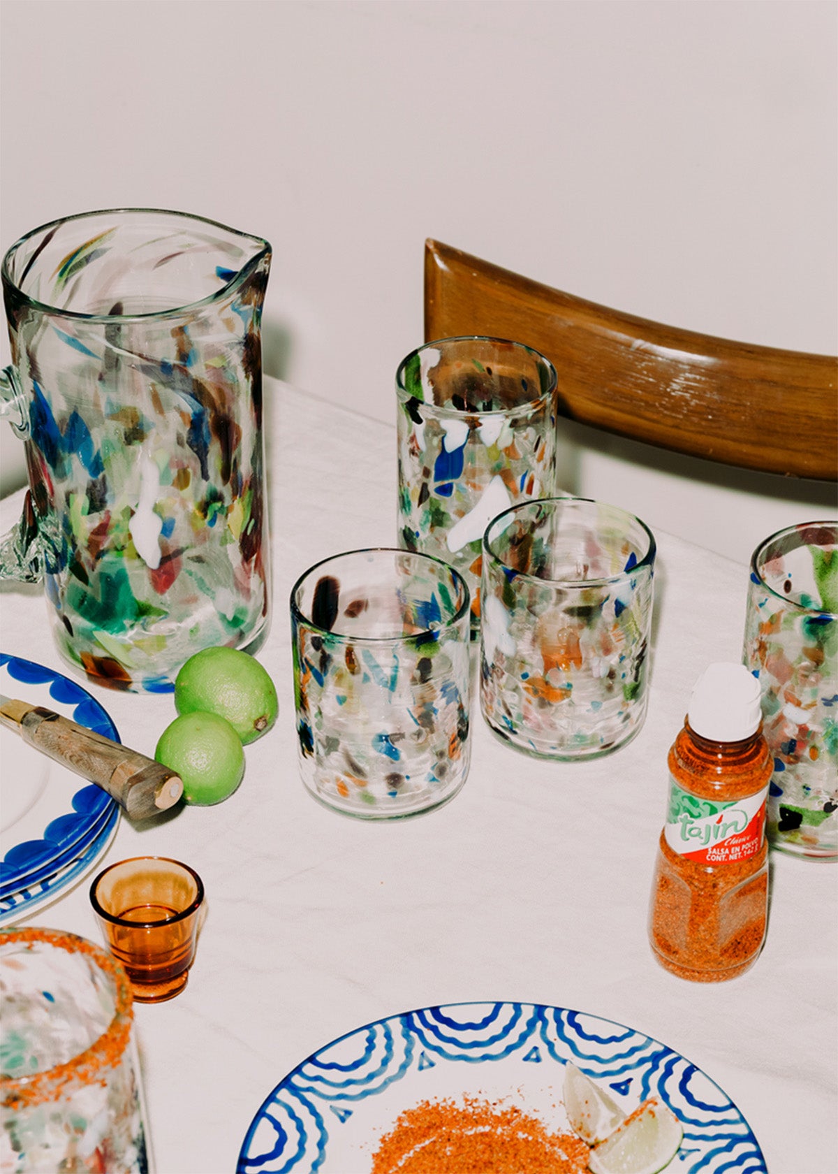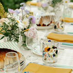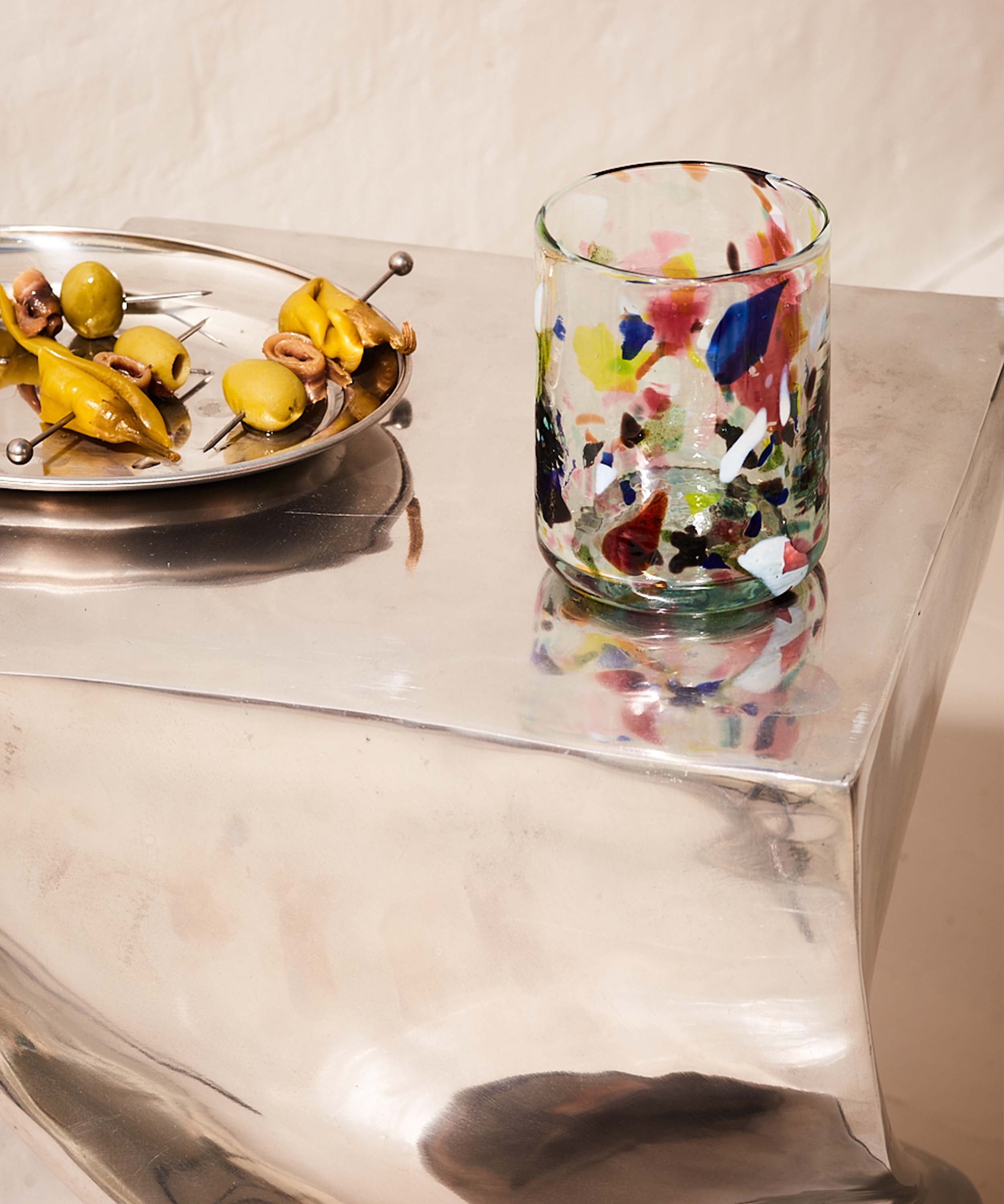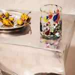 Mouth-blown multicolour terrazzo tumblers from the beautiful Balearic Islands.
